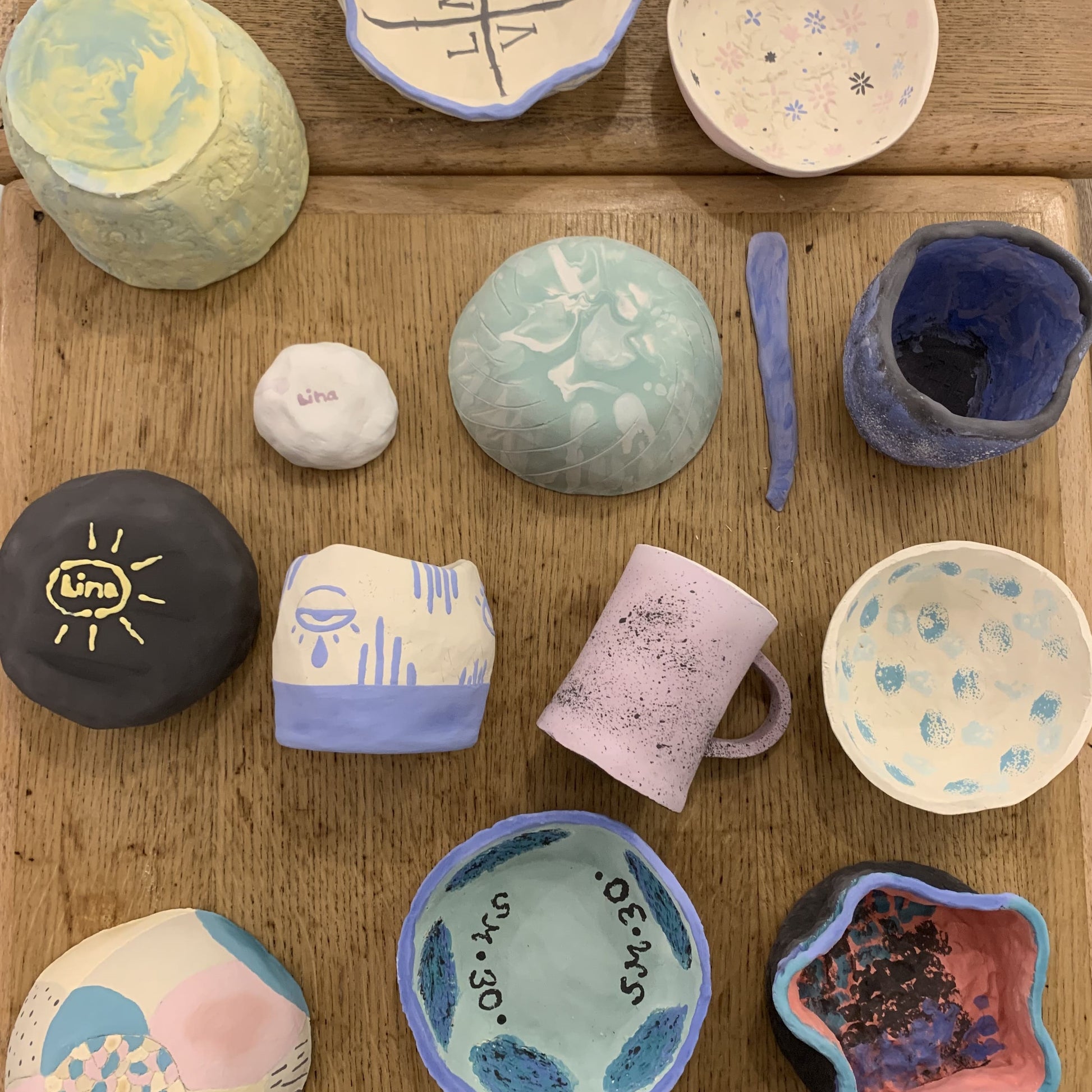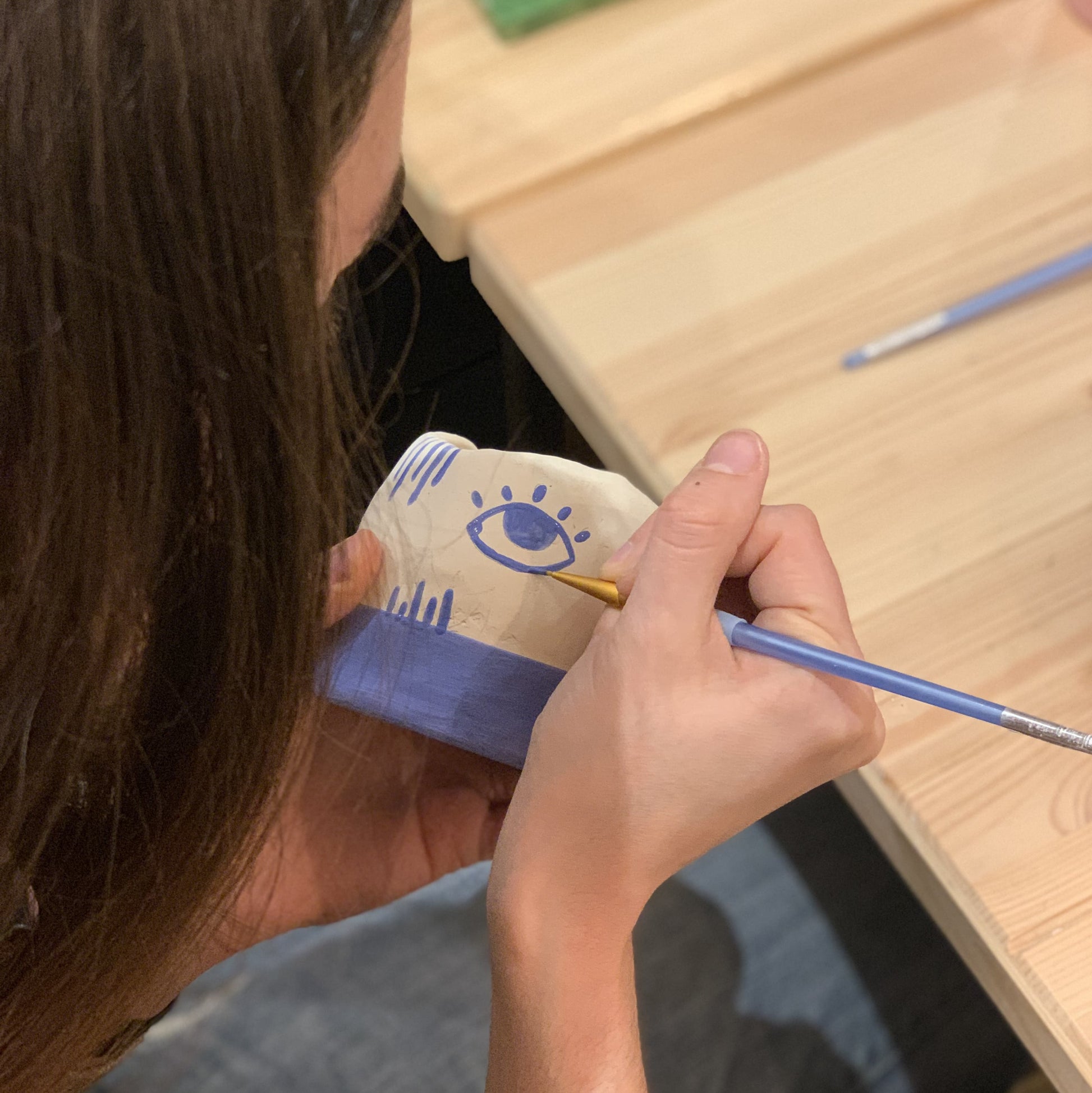 During the second session, you will be able to personalize them using the paint available and different ceramic decoration techniques .