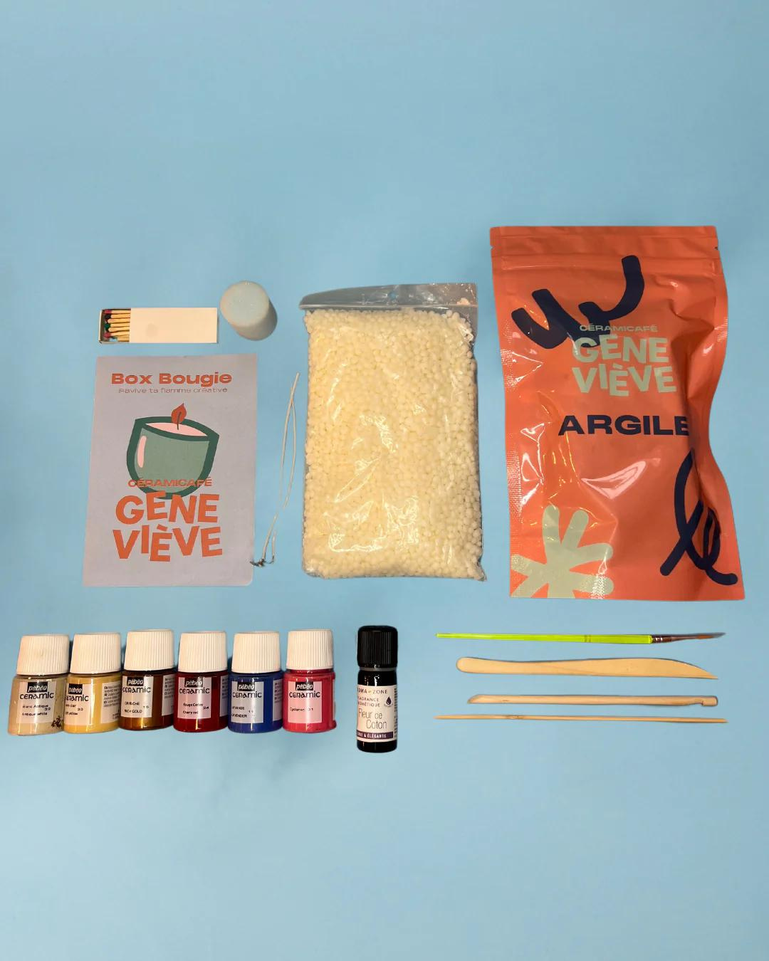Le Céramicafé Geneviève vous propose sa box bougie, pour créer votre propre bougie de A à Z et raviver votre flamme créative !